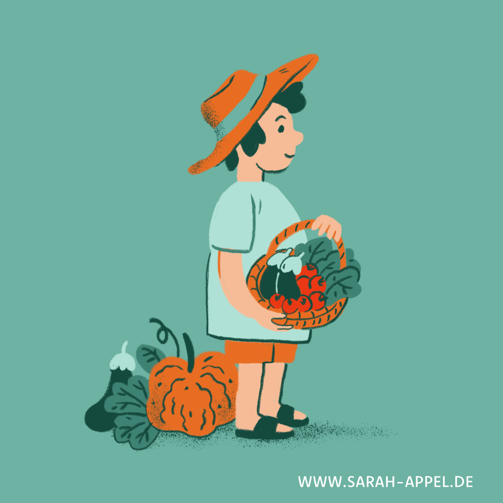 Durch die Farbreduktion mit Fokus auf Grün, Gelb und Orange wirkt die Karte trotz vieler Details nicht überladen. Interessante Elemente wie eine verspielte Umrandung und kleine Texturen geben den Illustrationen Tiefe und Charme.