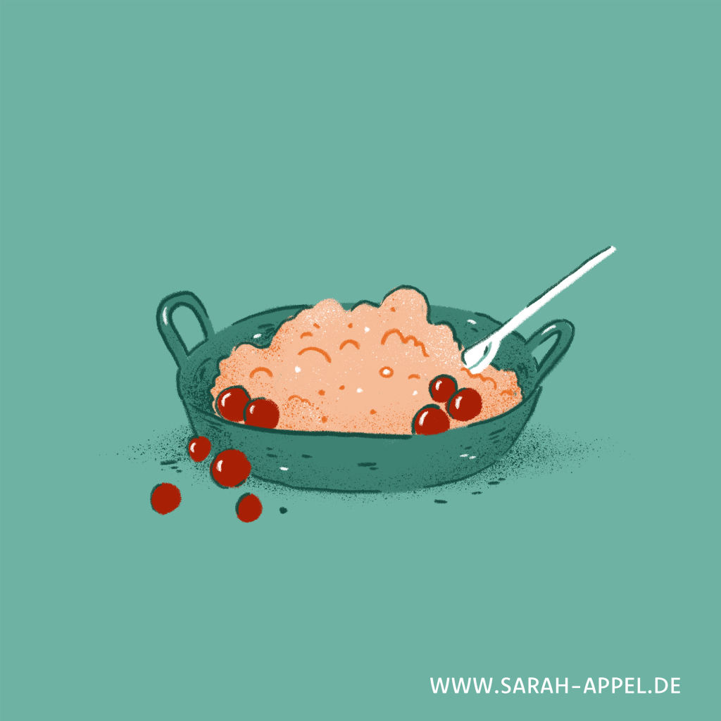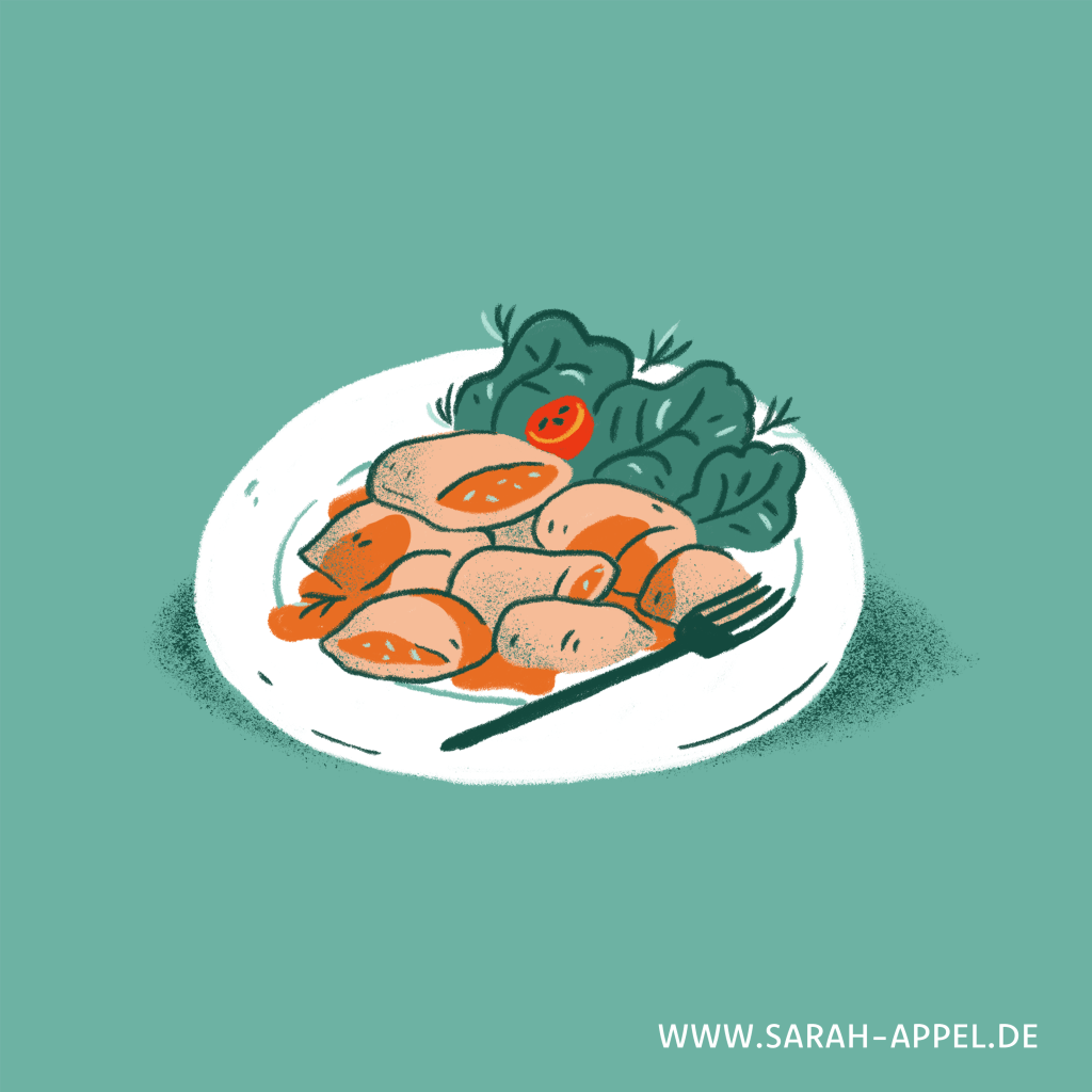 Auf Basis meiner Recherche zu regionalen Speisen habe ich ausgewählt, welche Motive ich für die Karte benutze. Wichtige Punkte für mich waren der Bezug zur geografischen Lage, die Eignung als Illustration sowie eine ausgewogene Mischung aus herzhaften und süßen Speisen, und den besonderen kulinarischen Highlights der Region.