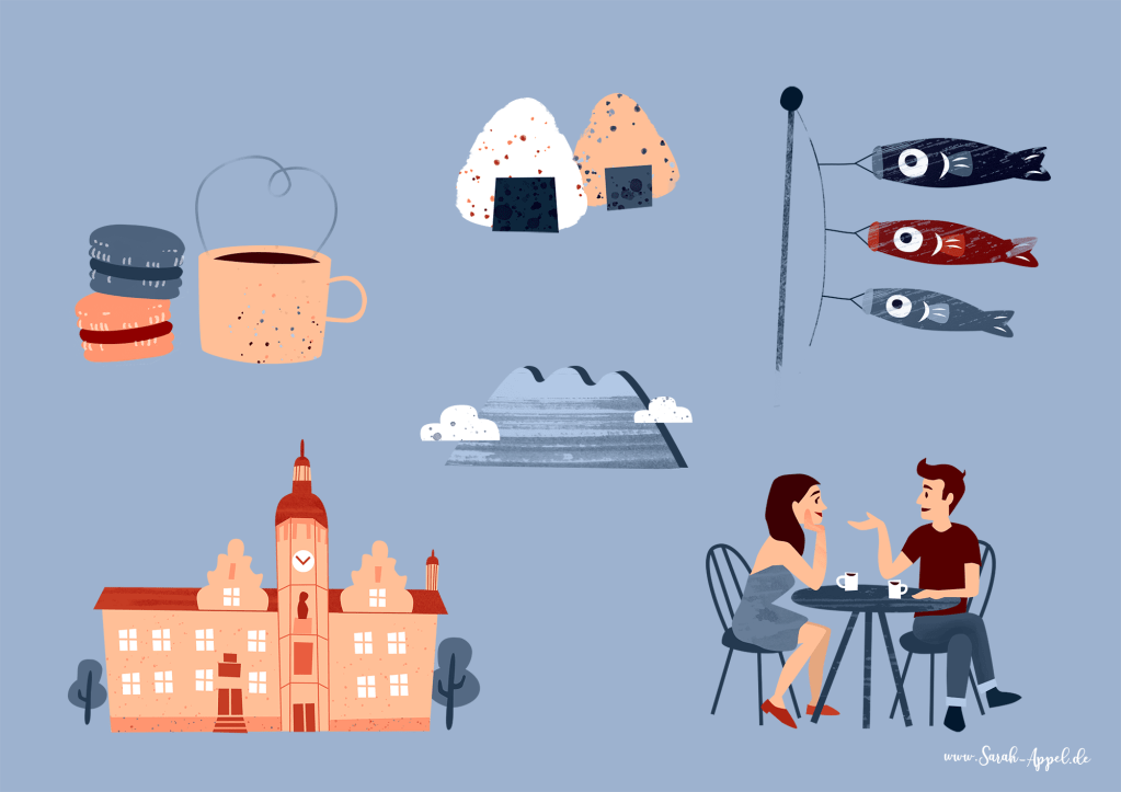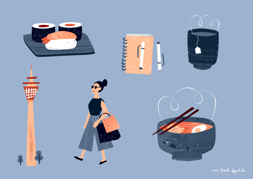Wir alle mögen liebevoll illustrierte Stadtkarten. Dieses private Illustrationsprojekt zeigt das Japanviertel in Düsseldorf, mit seinen vielen kleinen Läden und Restaurants. Aber auch die angrenzende Altstadt und das Rheinufer sind beliebte Ausflugsziele.
