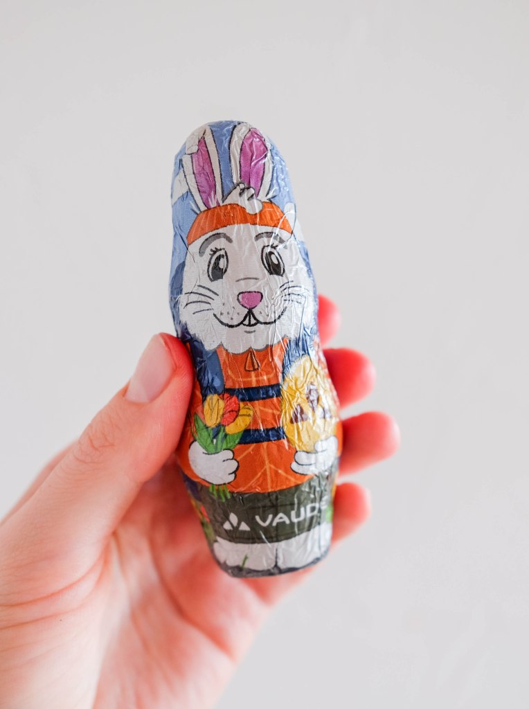 Die Figur wurde als Werbegeschenk umgesetzt und in den VAUDE-Filialen kurz vor Ostern an Kunden verteilt.