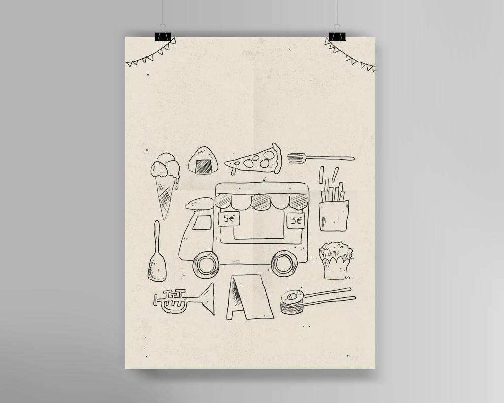 In diesem privatem Projekt, habe ich ein Plakat für ein fiktives Street Food Festival gestaltet. Über die Vektorillustratione habe ich Texturen aus Gouache und Tusche gelegt um einen „haptischeren“ Look zu erzeugen.